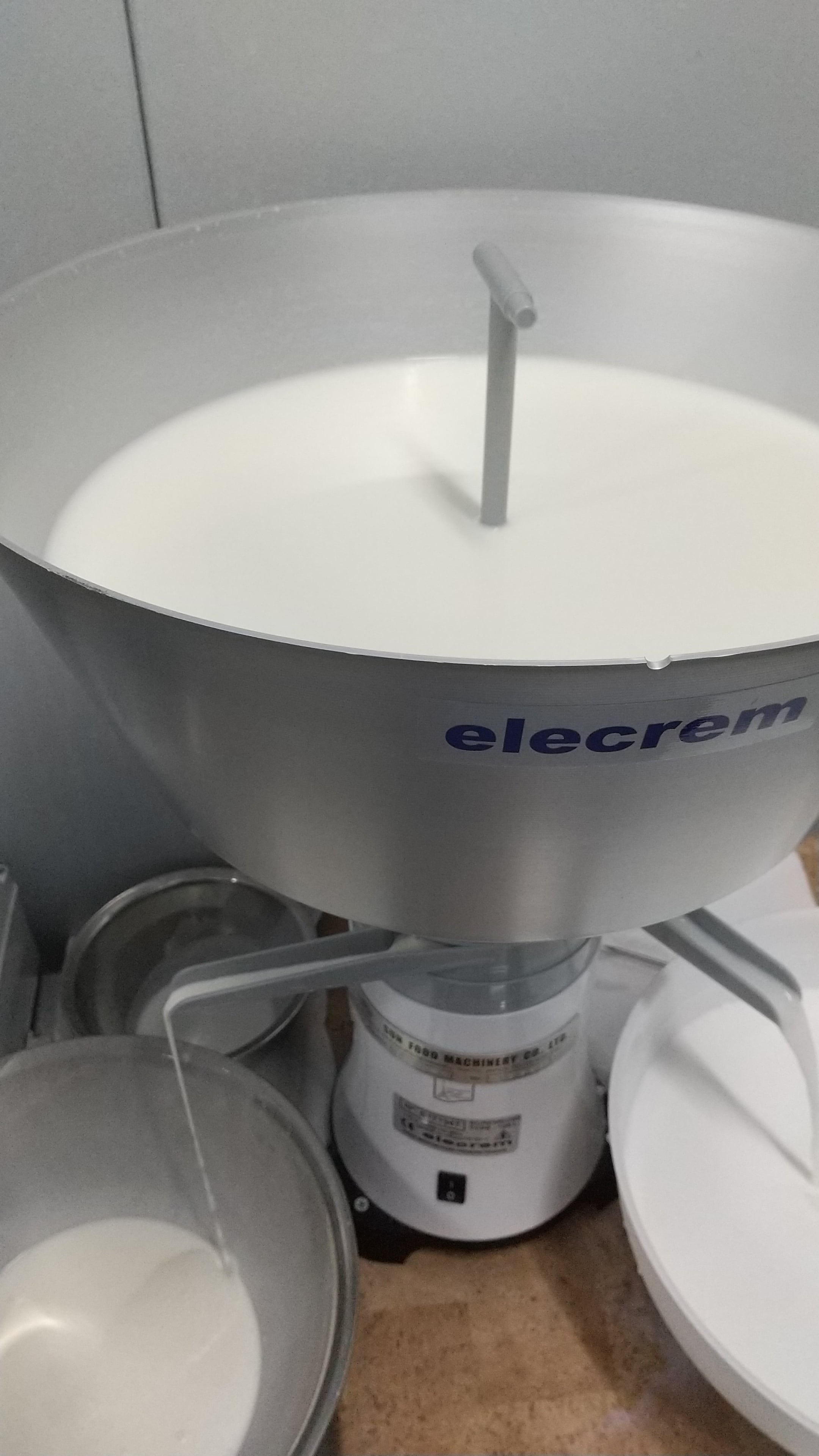 搾りたての生乳をミルクセパレーター(遠心分離機)をつかって